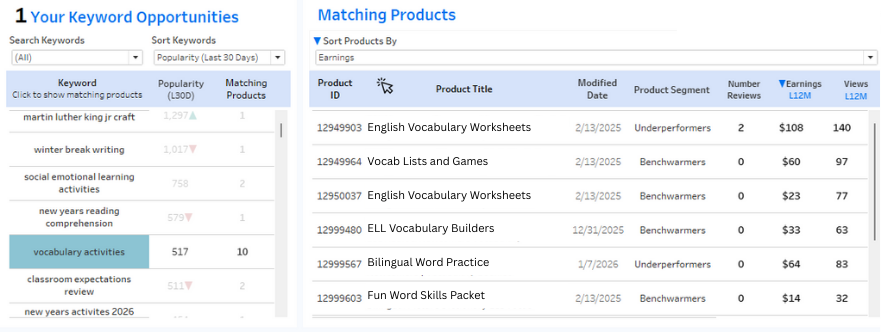 Find seasonal, niche, and other high-opportunity keywords, and see which of your listings are best matched to rank for them.
